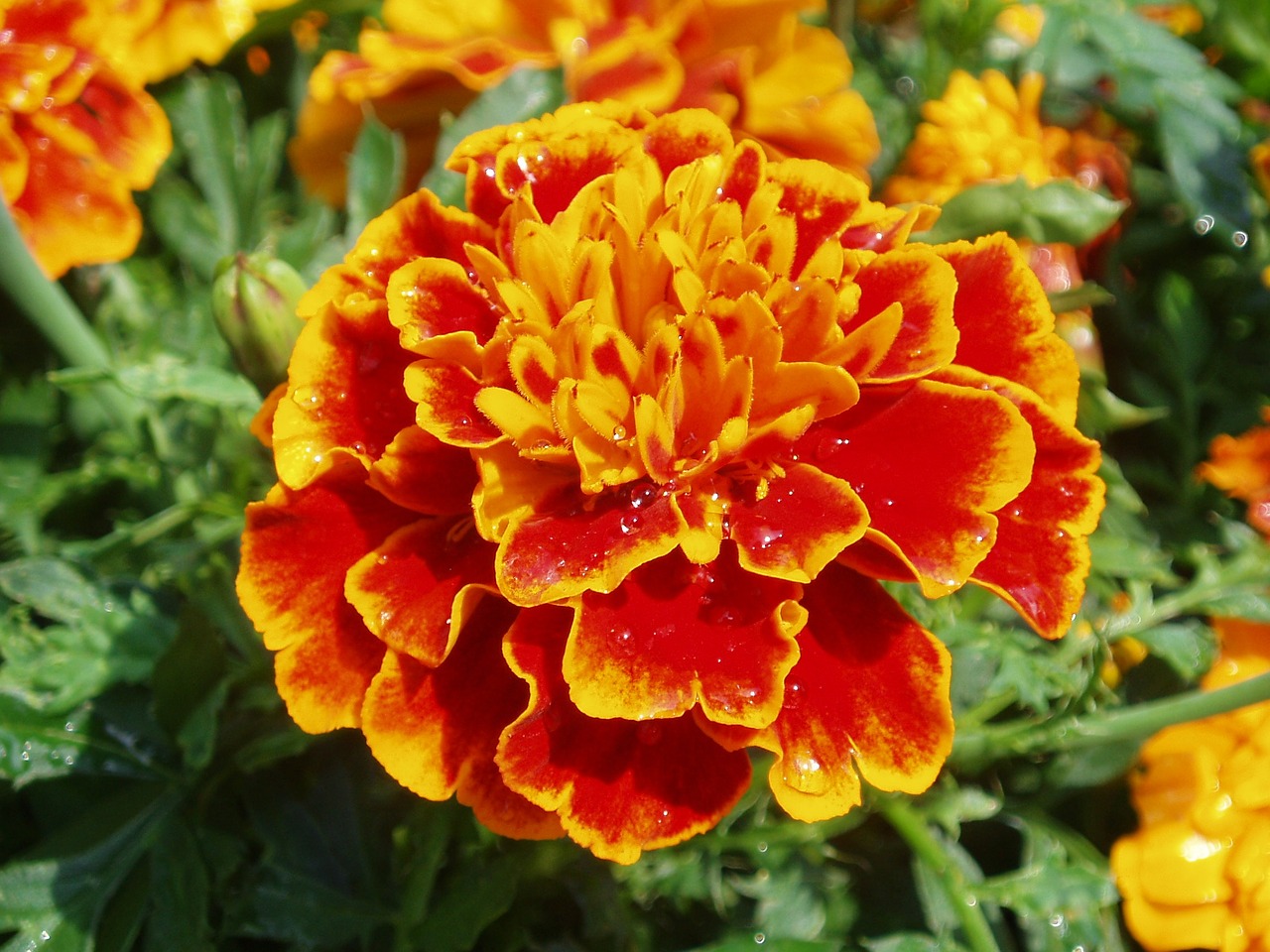 Sobre el contenido químico en las inflorescencias de la caléndula existen numerosas referencias, entre otros componentes se han detectado la presencia de aceites esenciales (en 0,2% a 0,3%), ácido salicílico, ácido fenólico, esteroles, carotenoides muy abundantes, glucósidos, flavonoides, taninos, un principio amargo llamado calendulina, una saponina triterpénica, pigmentos, xantofilas, mucílagos, umbeliferona, esculetina y escopoletina.